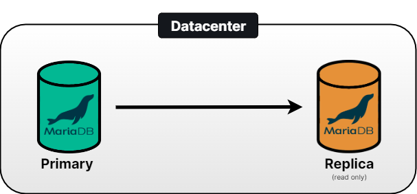 Two MariaDB instances are deployed in the same data center: the main node with a read-only replica.