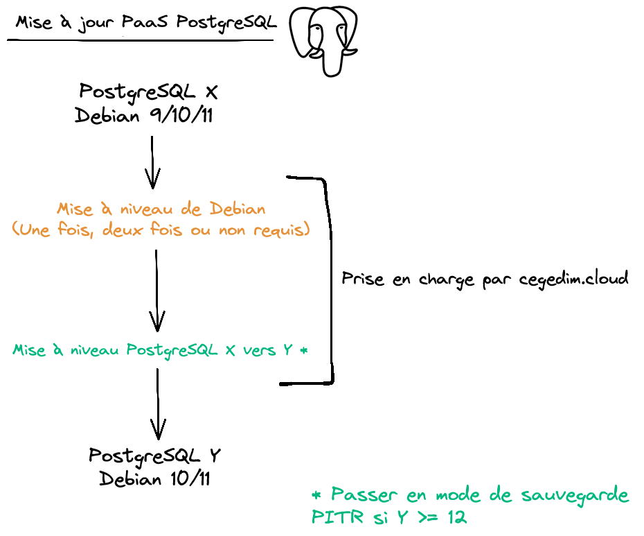 La mise à jour d'un PaaS PostgreSQL est de la responsabilité de **cegedim.cloud** et peut être demandée via un [ticket requête](https://itcare.cegedim.cloud/support?createTicket=true\&requestTypeIndex=3\&formName=DB_POSTGRES\&step=Request) soumis depuis ITCare en précisant un créneau de disponibilité pour l'opération.