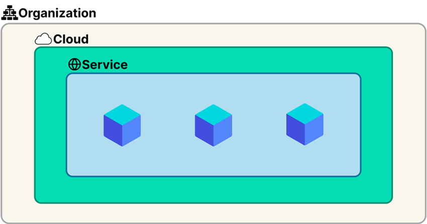 It is therefore possible, for example, to have a Cloud that gives full power to your development teams so as not to disrupt production. Within a Cloud, resources are then grouped into **Services**.