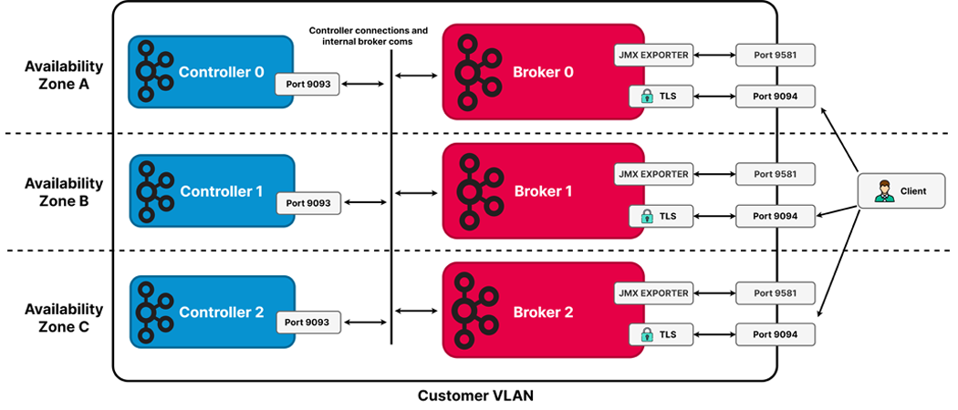To take full advantage of Apache Kafka as a Distributed System, **cegedim.cloud** ensures that brokers are dispatched on multiple Availability Zones to maximize resiliency and redundancy.