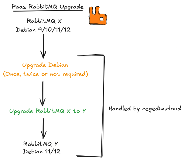 Depending on the source and target versions of RabbitMQ, it may be necessary to first migrate the operating system to a version supported by **cegedim.cloud** (for more information, check [#rabbitmqupgradeinplace-os-rabbitmqsupportmatrixmatrice](#rabbitmqupgradeinplace-os-rabbitmqsupportmatrixmatrice "mention")).