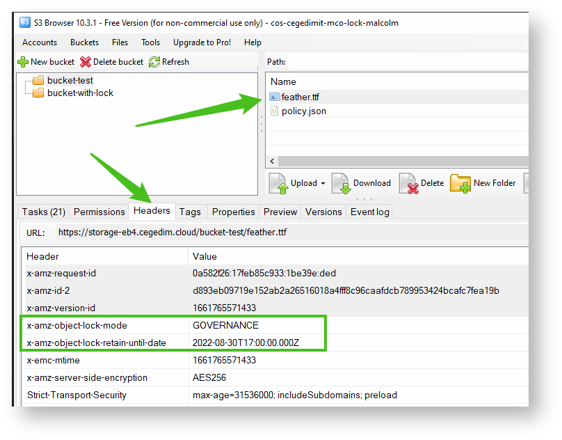 In **Compliance mode**, if you applied a wrong retention period (e.g 6 years instead of 6 days) cegedim.cloud has no possibility to delete or shorten the retention period.