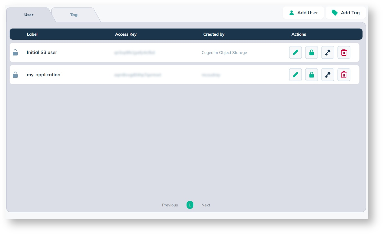 **Object users** are users created to perform operations on cegedim.cloud Object Storage service using the **S3 API**.